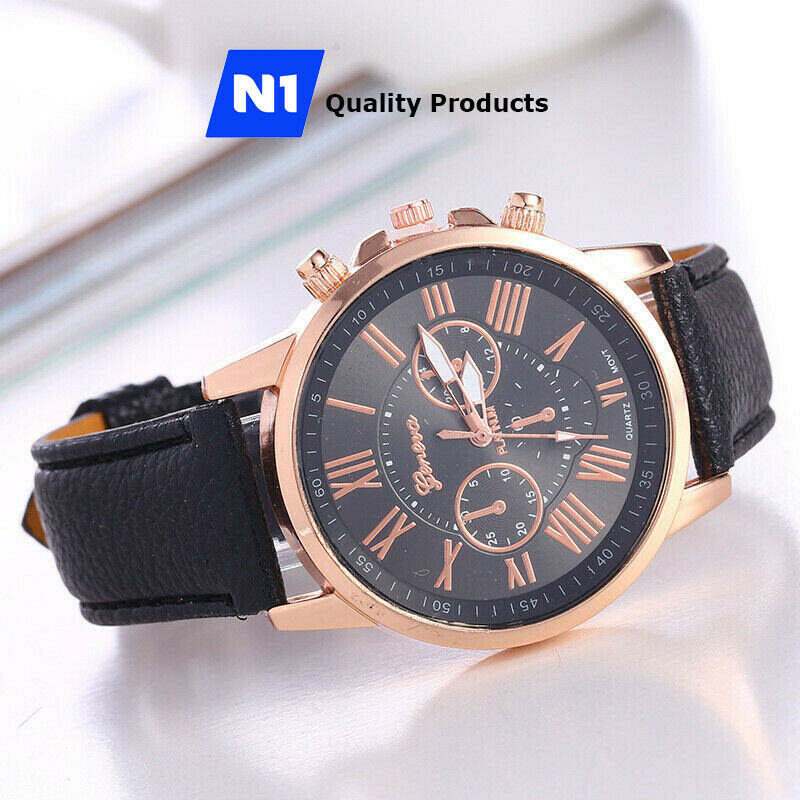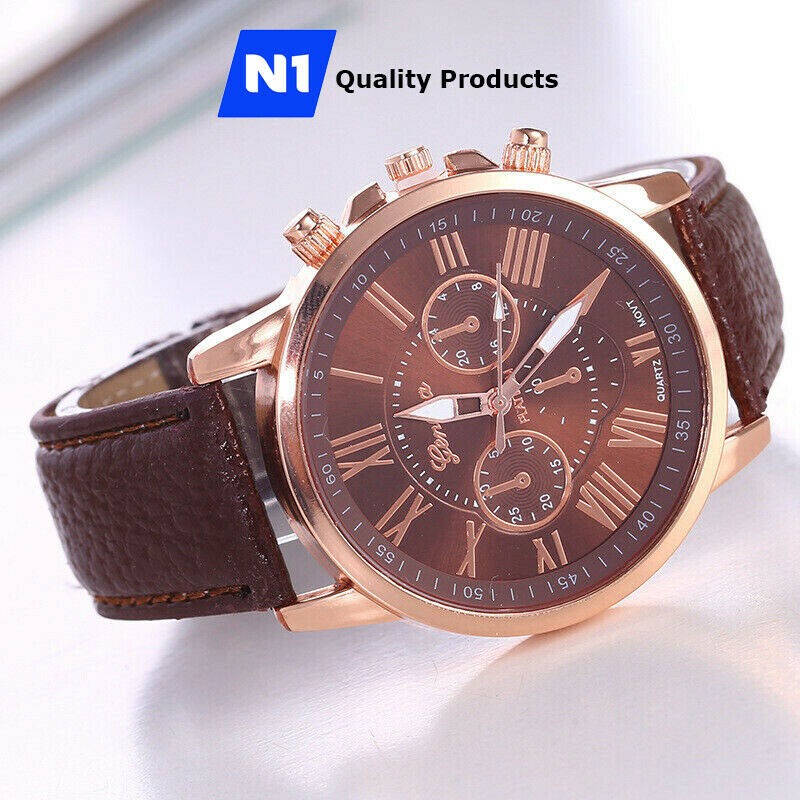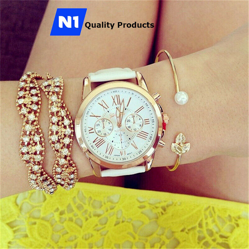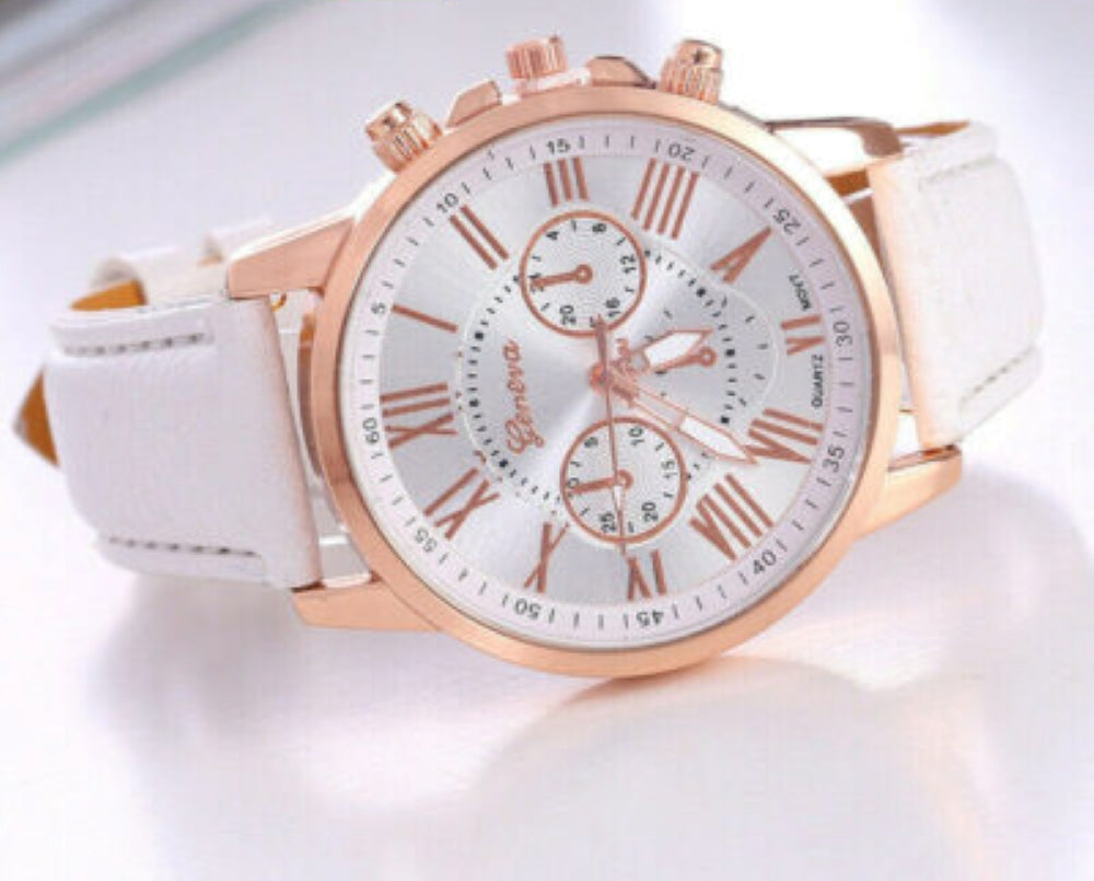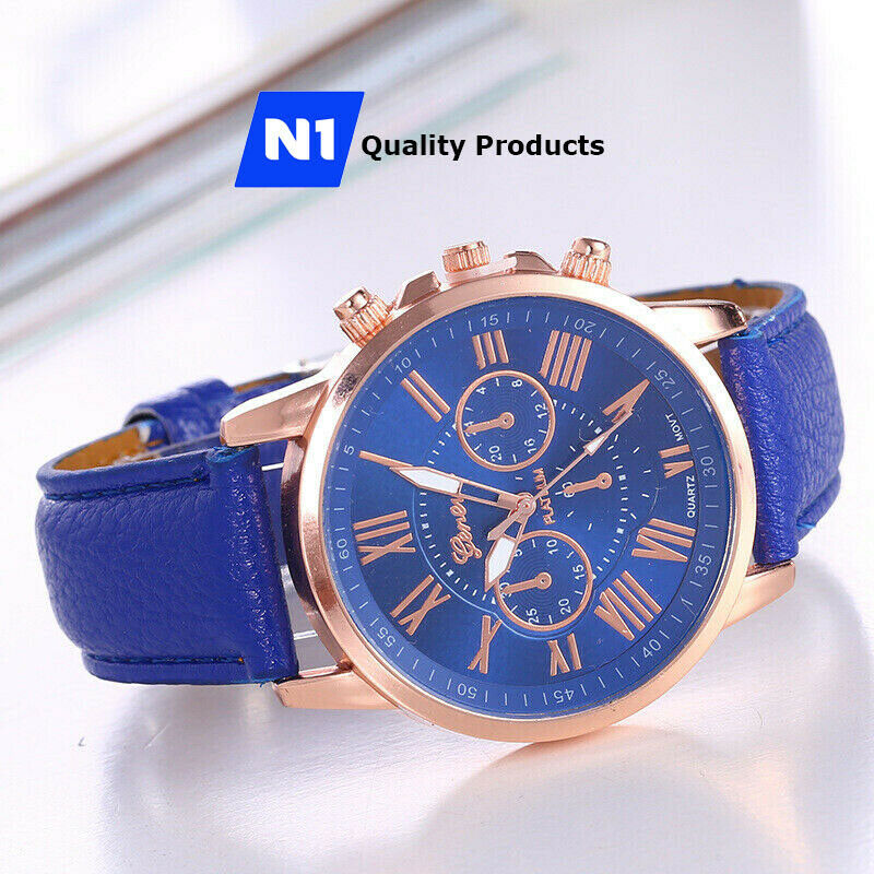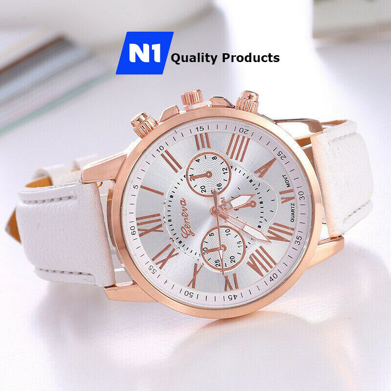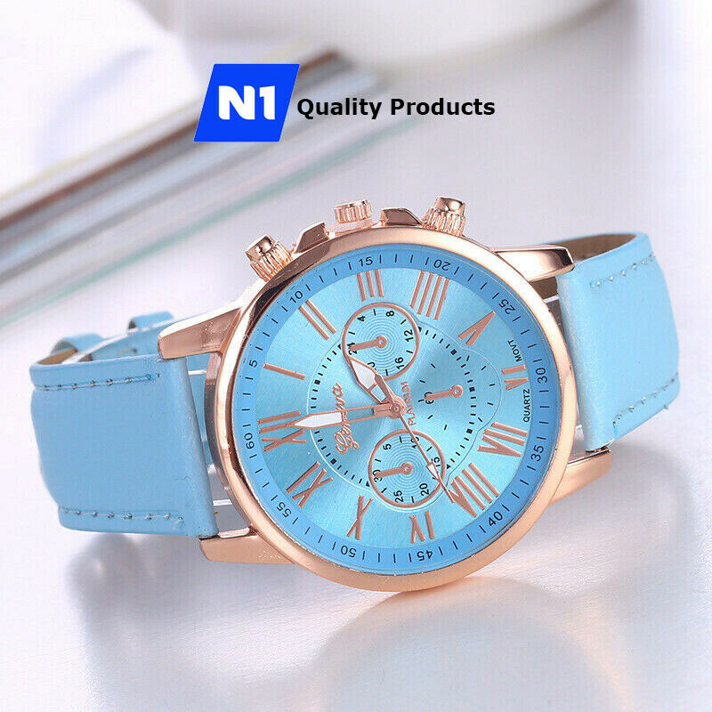New Fashion Geneva Women Leather Band Stainless Steel Quartz Analog Wrist Watch